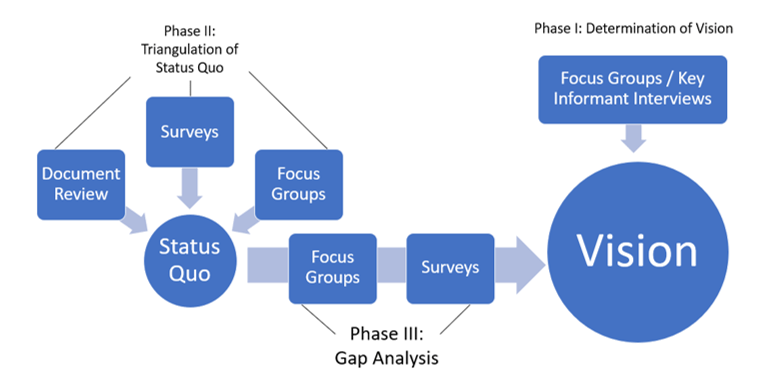 Phase III focused on identifying future training needs in alignment with the newly defined vision. Cross-functional focus groups and ranking surveys helped prioritize these needs. Survey ties were broken through targeted follow-ups to ensure clarity.