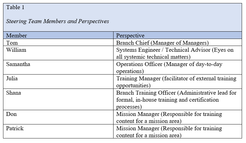 A steering team was created to guide the change effort. Each member brought a unique operational perspective.